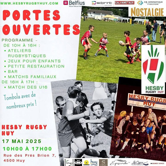 Le samedi 17 mai, le Hesby Rugby Huy organise ses premières portes ouvertes. L’occasion pour tous les âges de s’essayer au rugby à travers différents ateliers. Mais aussi de profiter d’une belle journée autour du ballon ovale.