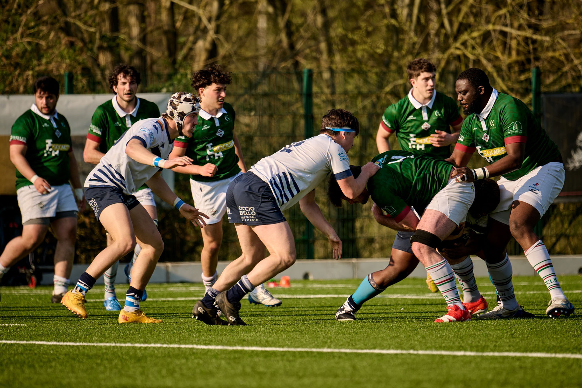 Si les Framerisois ont bien entamé la partie, ce sont les Waterlootois qui frappaient les premiers avec une percée et un essai de Louis Weber après 4 minutes de jeu (7-0). Une pénalité signée Charles Depasse et un essai de Nathan Delwarte plus tard, Frameries prenait la main peu avant la demi-heure (7-10). Mais plusieurs minutes de flottement côté visiteur et de domination des locaux permettaient à l’ASUB d’aplatir à deux reprises, à chaque fois via Timothy Mc Dermott (21-10). Les Charbon et Or recollaient cependant juste avant les oranges, à la faveur d’un essai entre les perches de Charles Depasse (21-17).