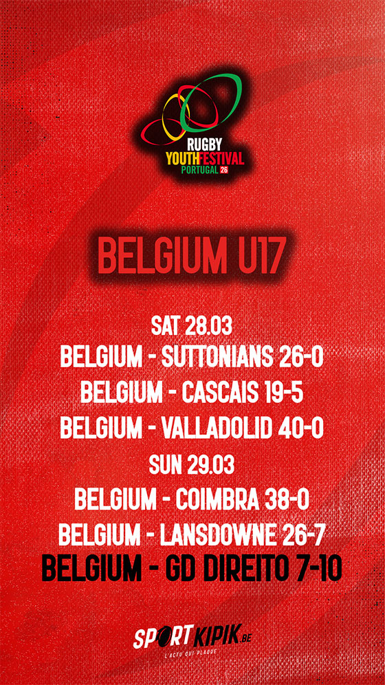 Qualifiée pour les demi-finales, l’équipe belge prenait alors la mesure de Lansdowne (26-7), accédant donc à la grande finale U17. Opposée à GD Direito, elle manquait cependant la dernière marche, de peu, et s’inclinait sur le score de 7-10. Les Belges rentrent néanmoins au pays avec une belle deuxième place.