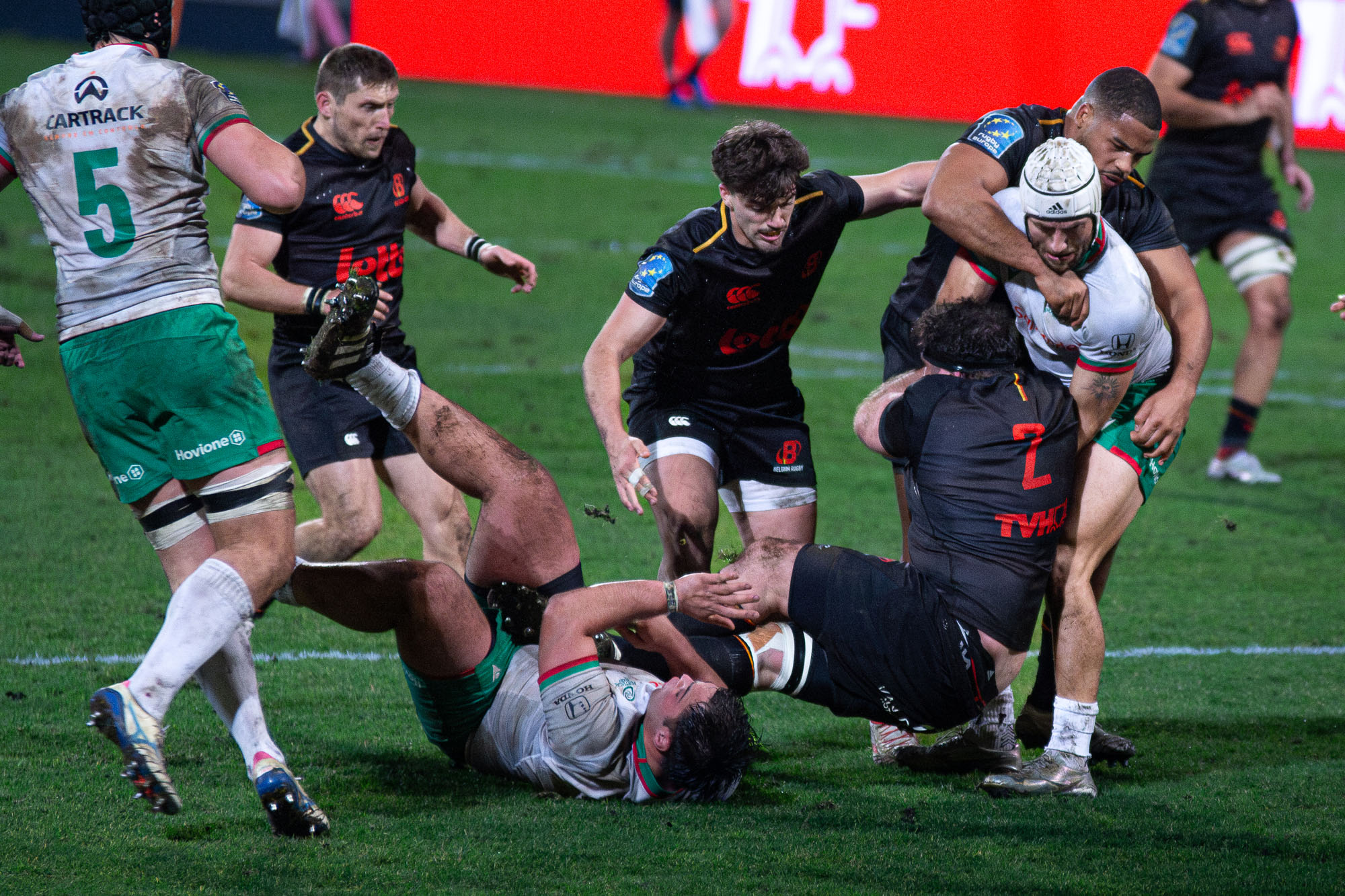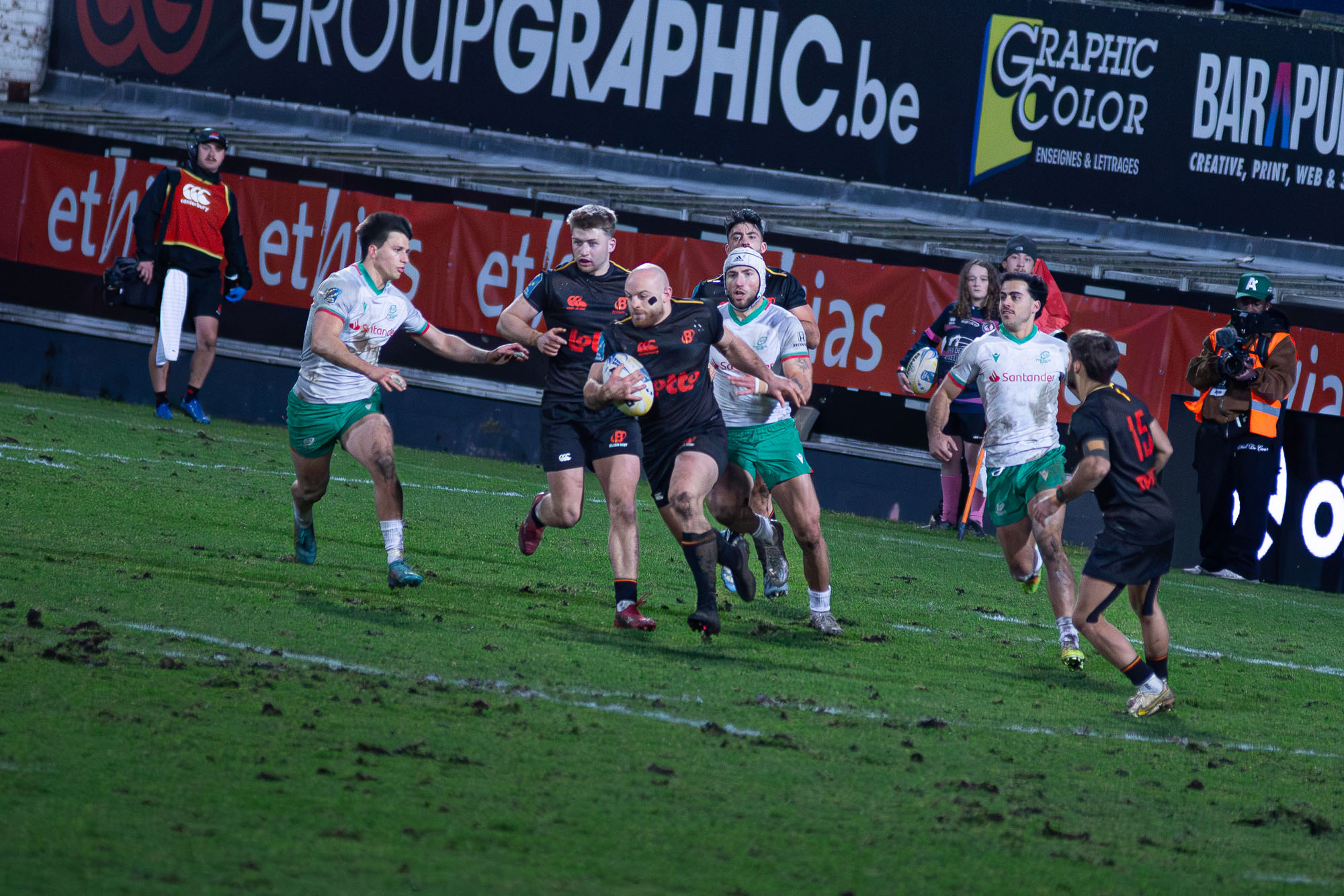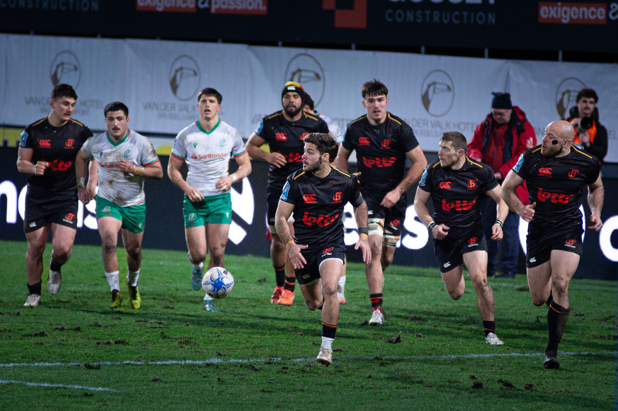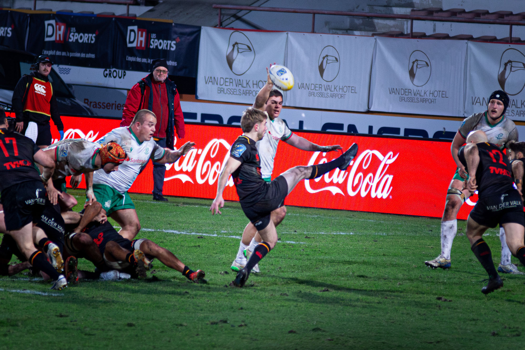 D’autant plus que les hommes de Laurent Dossat confirmaient en début de seconde période. Dominés dans la majeure partie des secteurs, nos compatriotes tenaient par contre en mêlée et devant. A la 49e, Julien Berger aplatissait alors sur un nouveau ballon porté pour ramener la Belgique à moins d’un essai transformé (17-23).