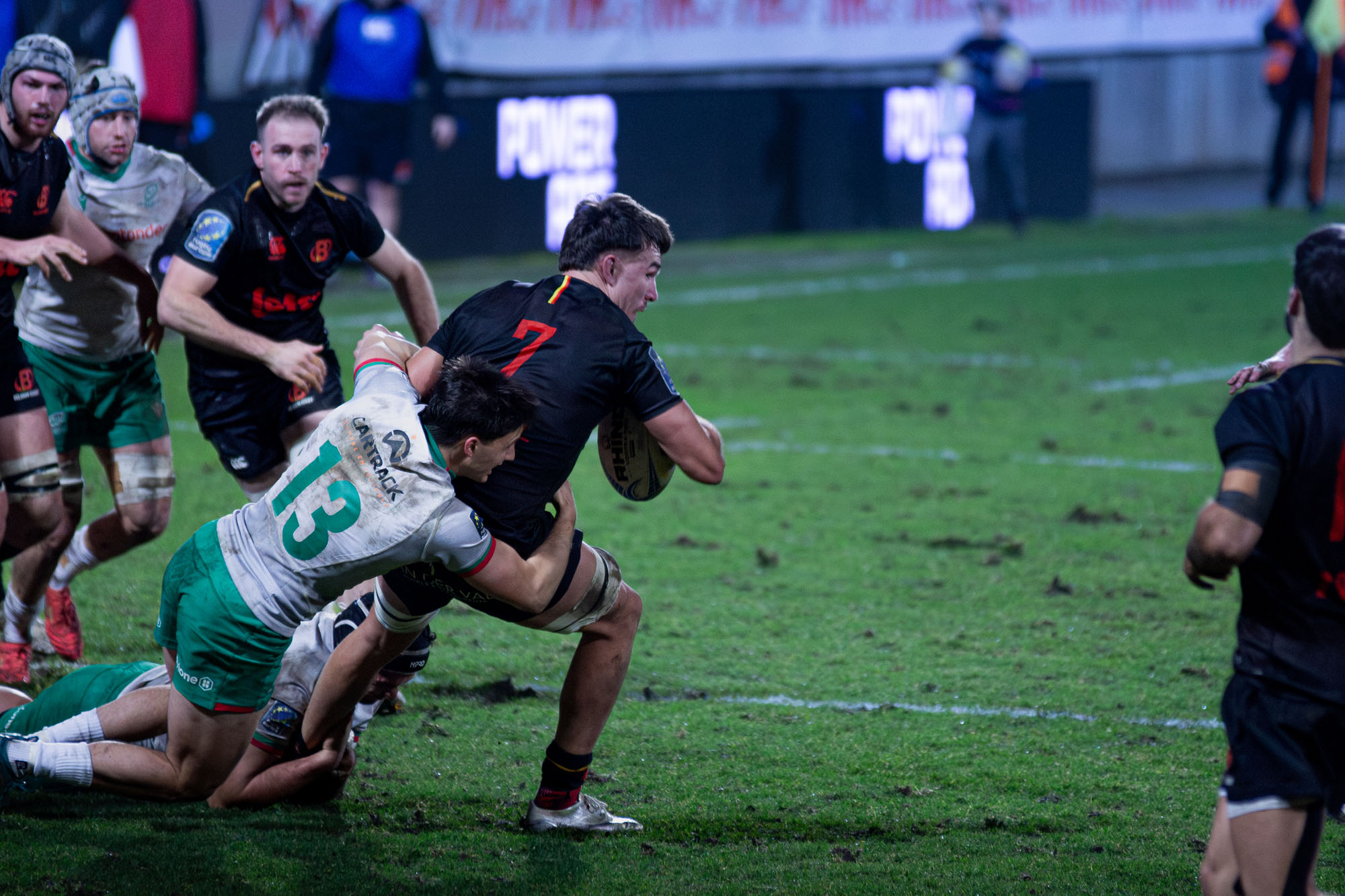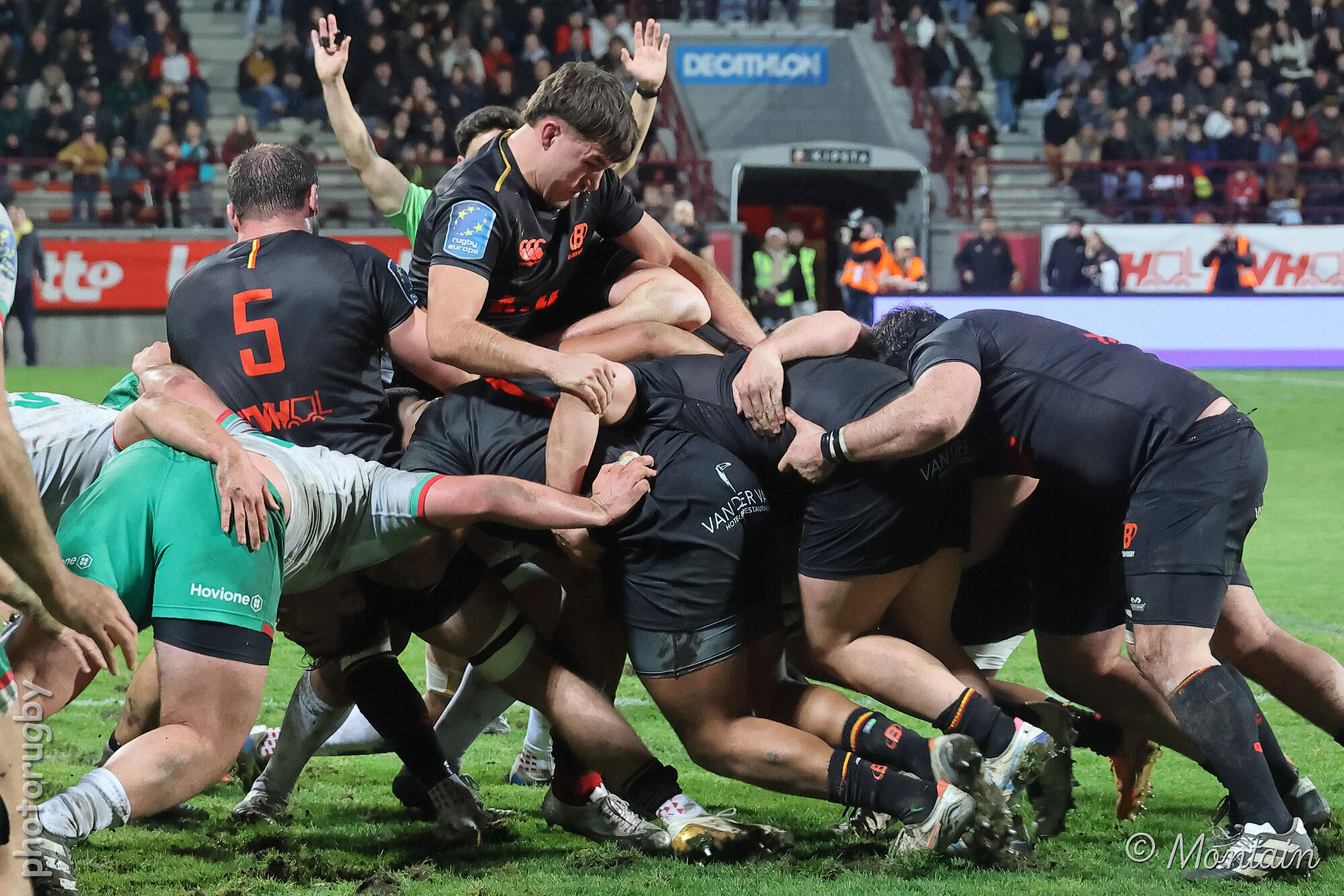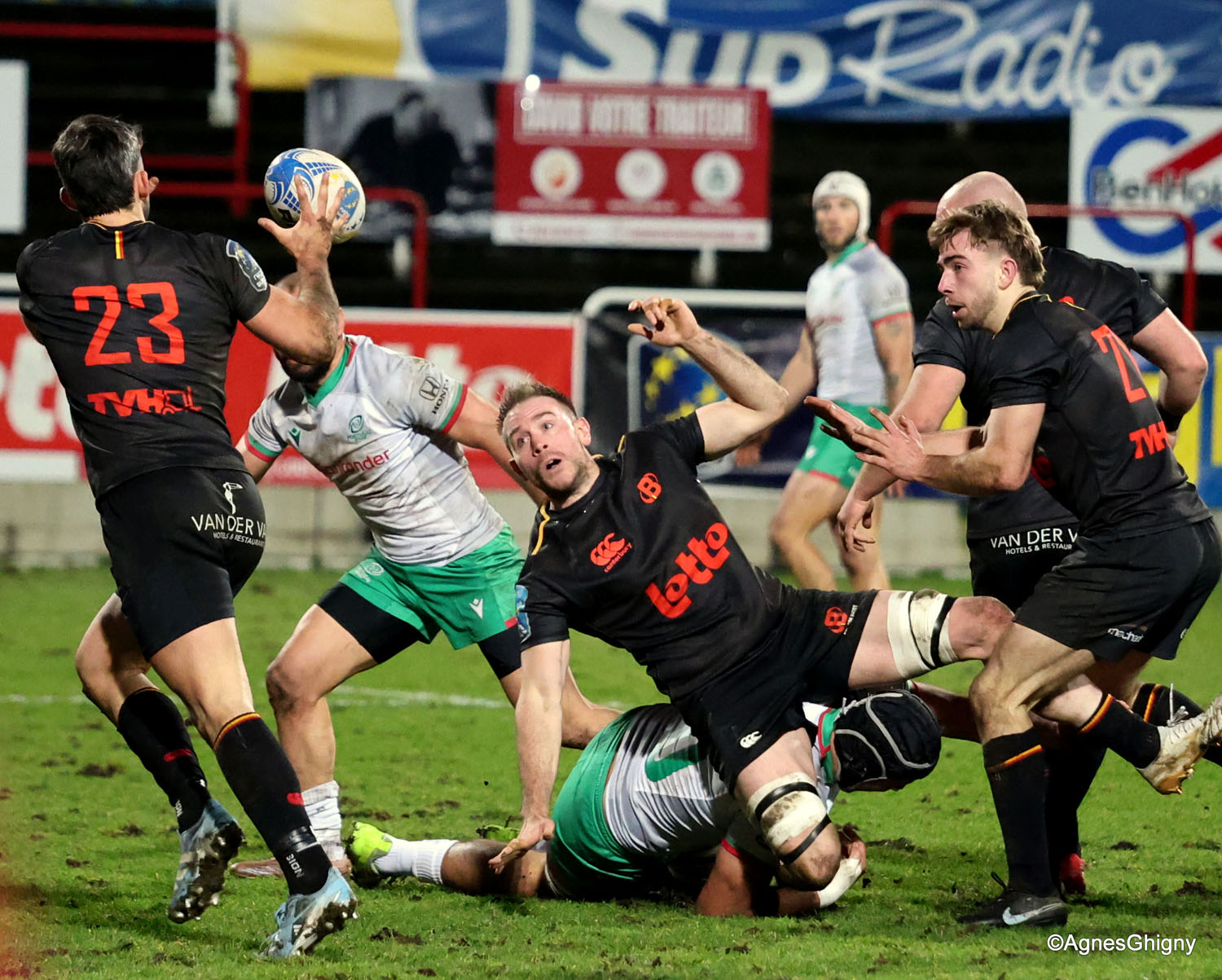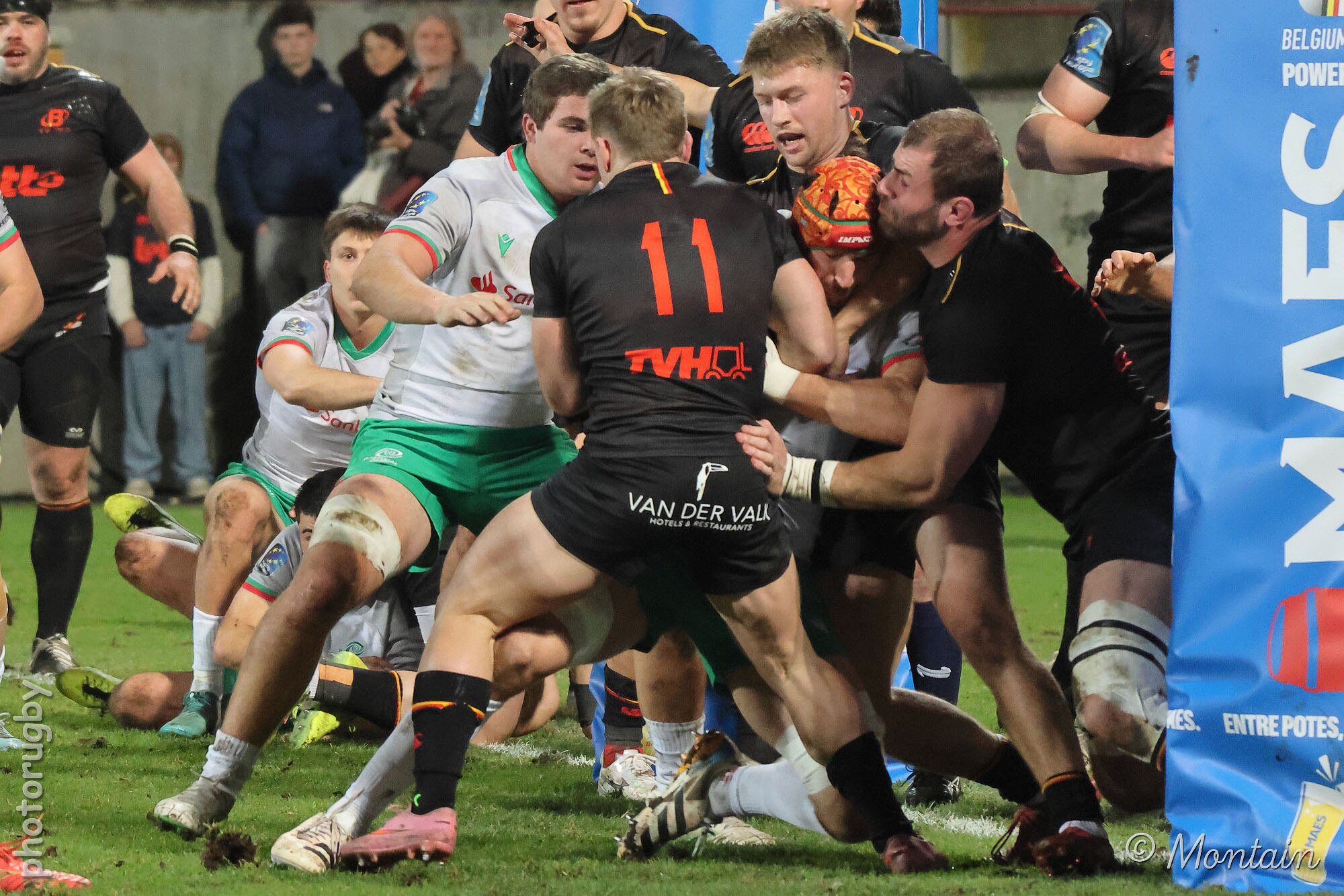 D’autant plus que les hommes de Laurent Dossat confirmaient en début de seconde période. Dominés dans la majeure partie des secteurs, nos compatriotes tenaient par contre en mêlée et devant. A la 49e, Julien Berger aplatissait alors sur un nouveau ballon porté pour ramener la Belgique à moins d’un essai transformé (17-23).