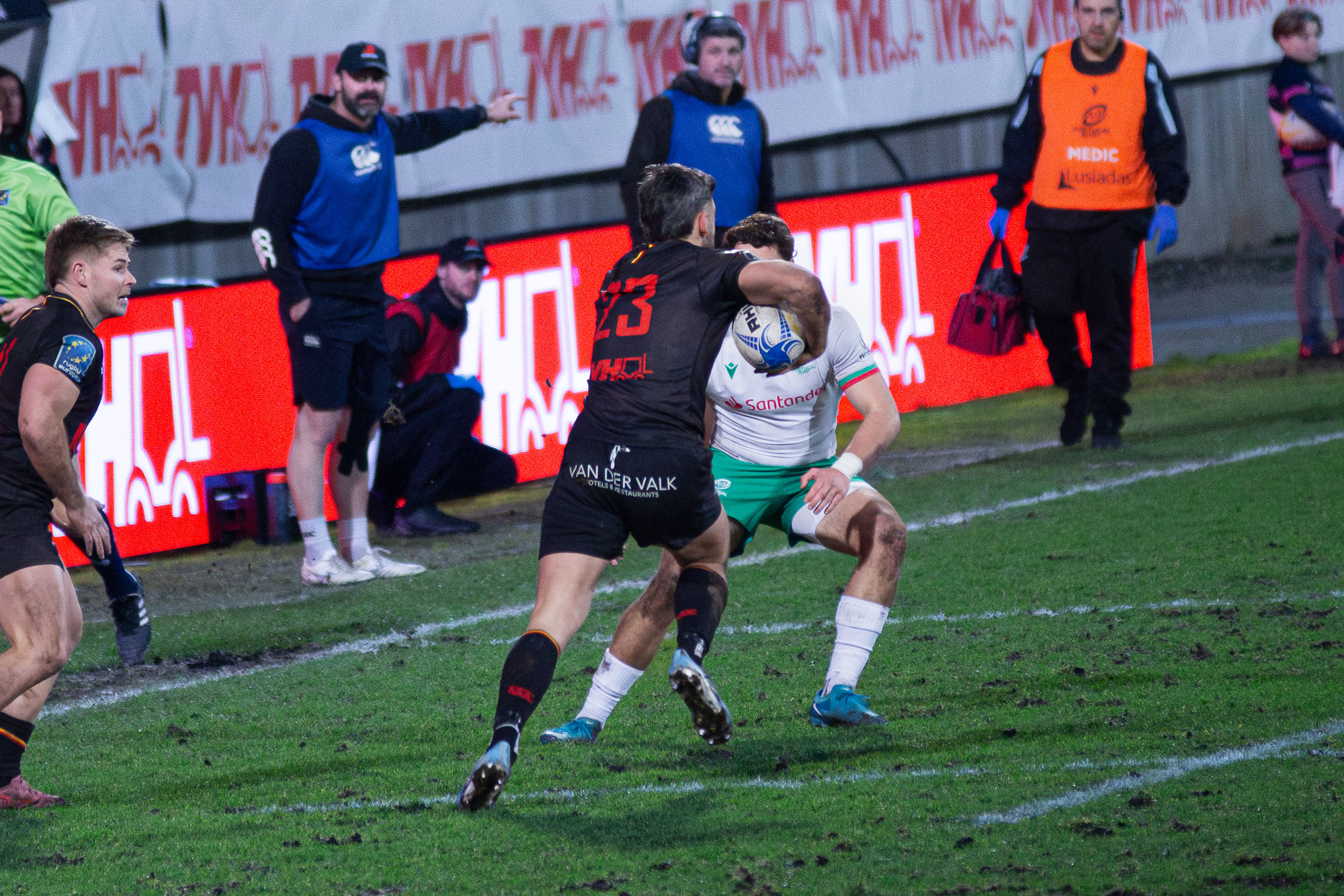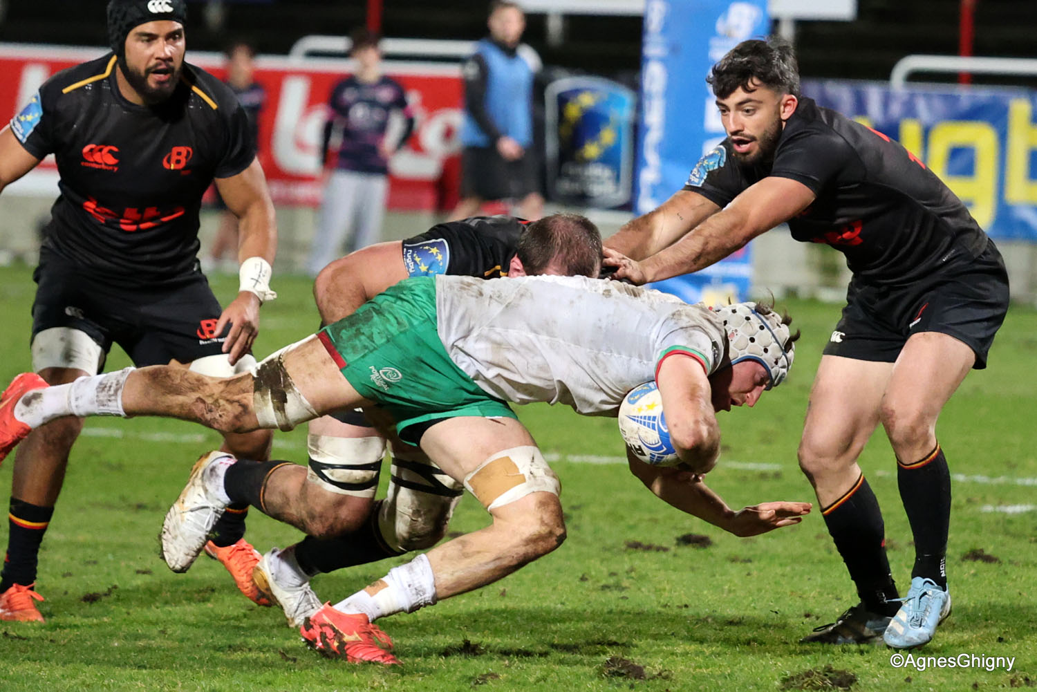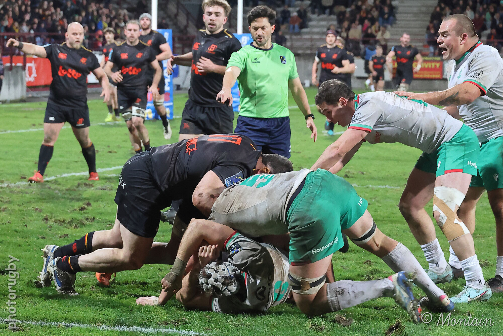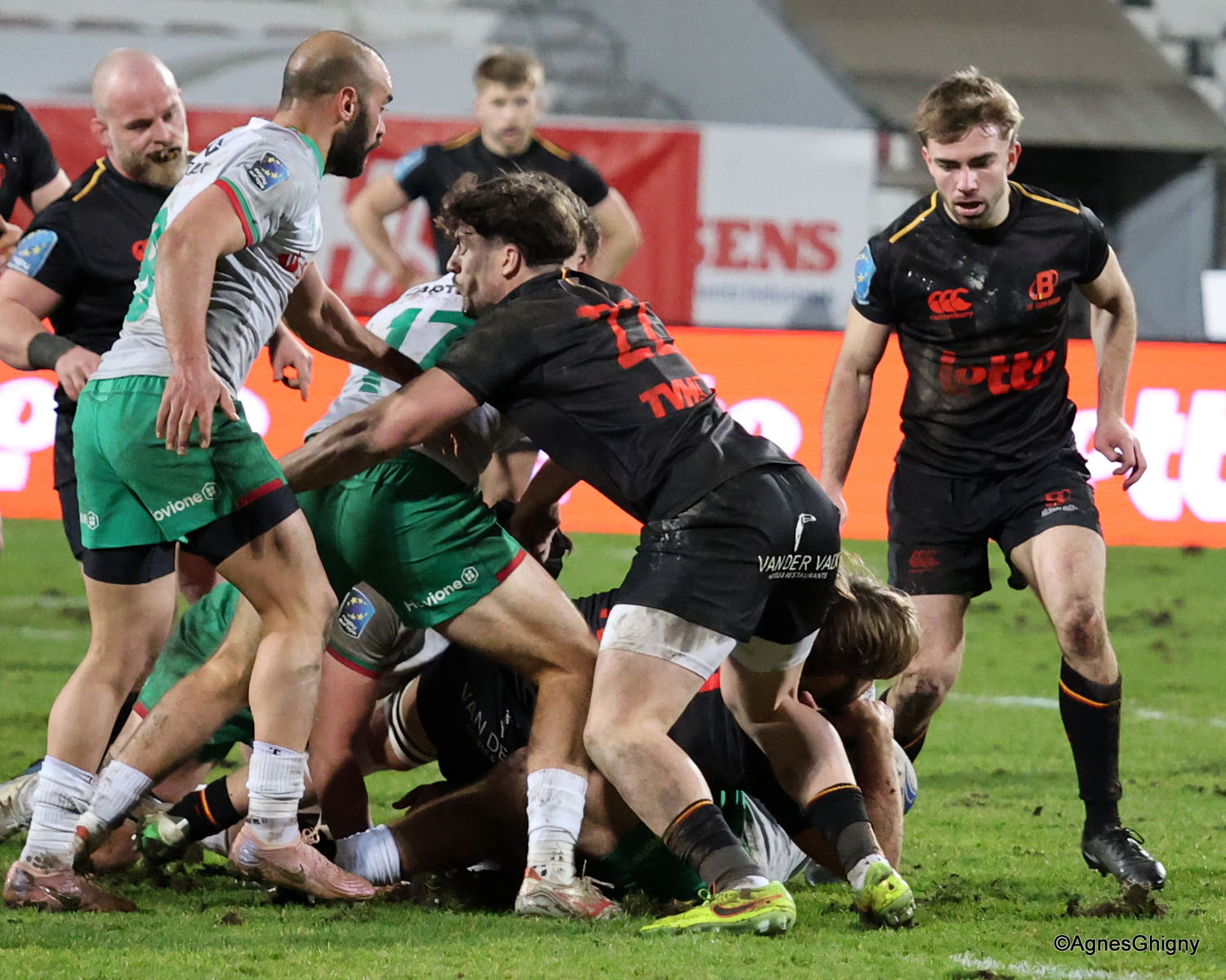 D’autant plus que les hommes de Laurent Dossat confirmaient en début de seconde période. Dominés dans la majeure partie des secteurs, nos compatriotes tenaient par contre en mêlée et devant. A la 49e, Julien Berger aplatissait alors sur un nouveau ballon porté pour ramener la Belgique à moins d’un essai transformé (17-23).