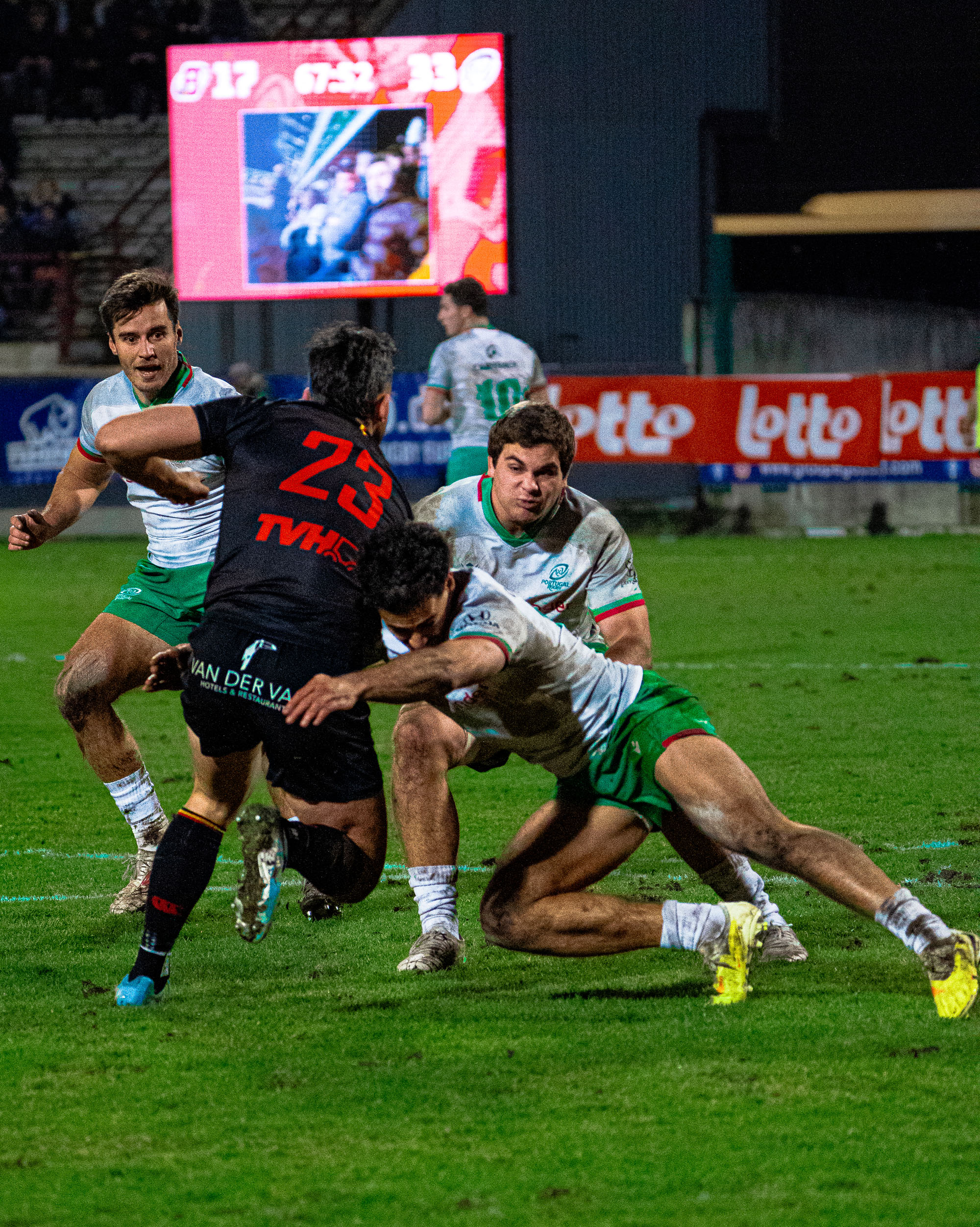 Après un petit passage à vide d’un quart d’heure, le Portugal remettait ensuite la main sur le ballon. Irrémédiablement. Avec le demi de mêlée Samuel Marques à la baguette, les Lusitaniens prenaient les 20 dernières minutes à leur compte. Et reprenaient le large au score grâce à une pénalité et trois nouveaux essais, le dernier de pénalité venant conclure la rencontre... à la 88e minute, après 10 dernières minutes passées dans les 22 belges...