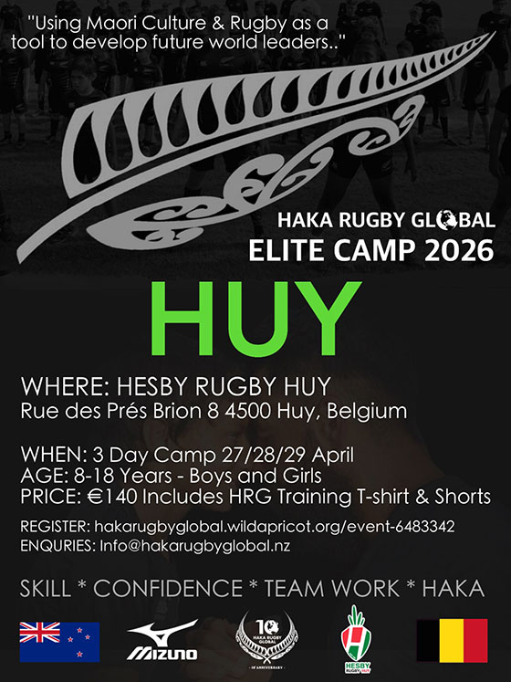 En 2026 à nouveau, le Hesby Rugby Huy accueillera un stage HAKA Rugby Global. Il se déroulera en effet les 27, 28 et 29 avril et proposera une fois encore une immersion dans la culture maori et le rugby néo-zélandais. Sont concernés les joueuses et joueurs âgés de 8 à 18 ans, peu importe le club dans lequel ils évoluent.