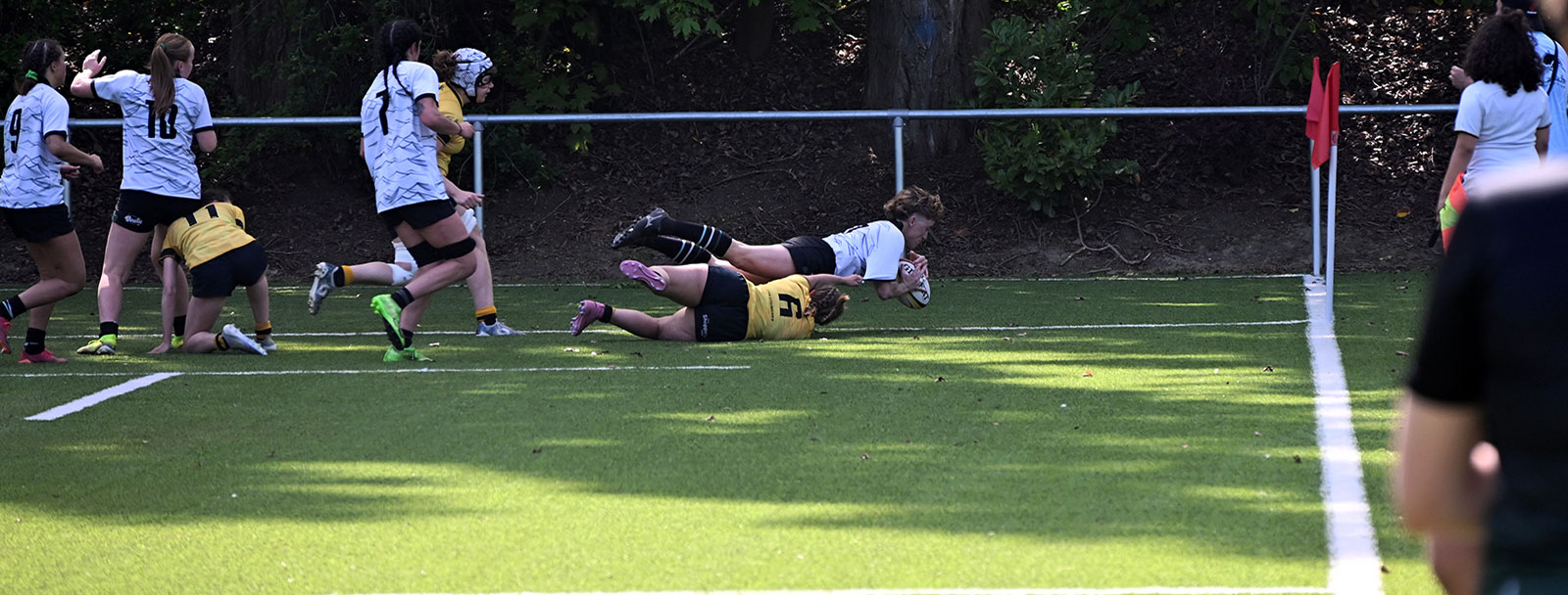 Comme la saison dernière, Soignies s’arrête donc en quarts. Frameries aussi. Les Coumères n’ont pas pu signer la passe de trois après leurs deux précédentes victoires contre le Kituro cette saison, s’inclinant au terme d’un match très disputé. A domicile, l’Ovalie a inscrit le premier essai par Louise Liégeois après 20 minutes de jeu (5-0). Davantage en difficulté en début de partie, Frameries haussait par la suite son niveau de jeu et aplatissait à son tour peu après la demi-heure, via Ameline Coustry (5-7). Un essai de Christ-Vie Mulema Mbayi permettait encore au Kituro de virer en tête aux oranges (10-7).