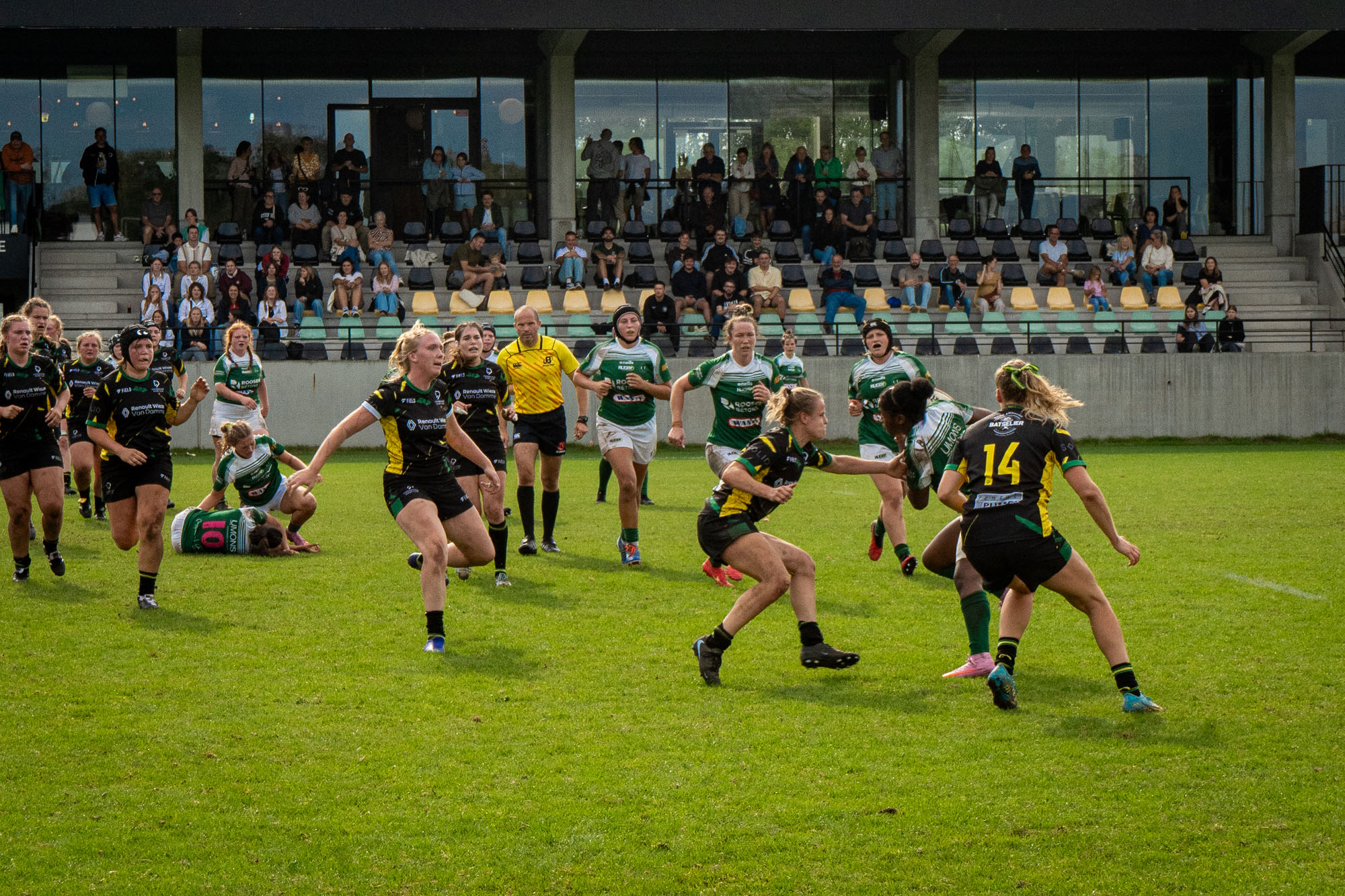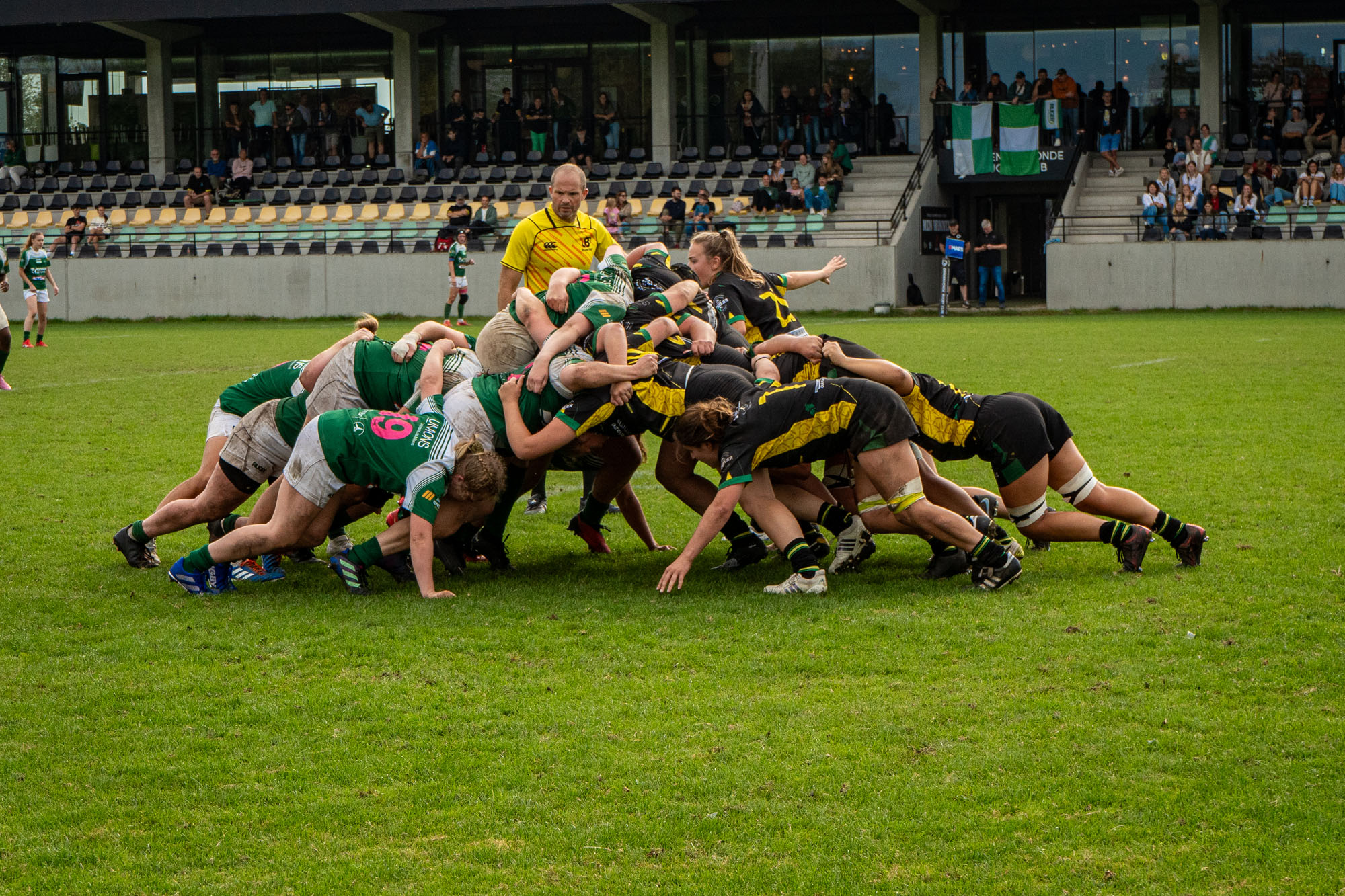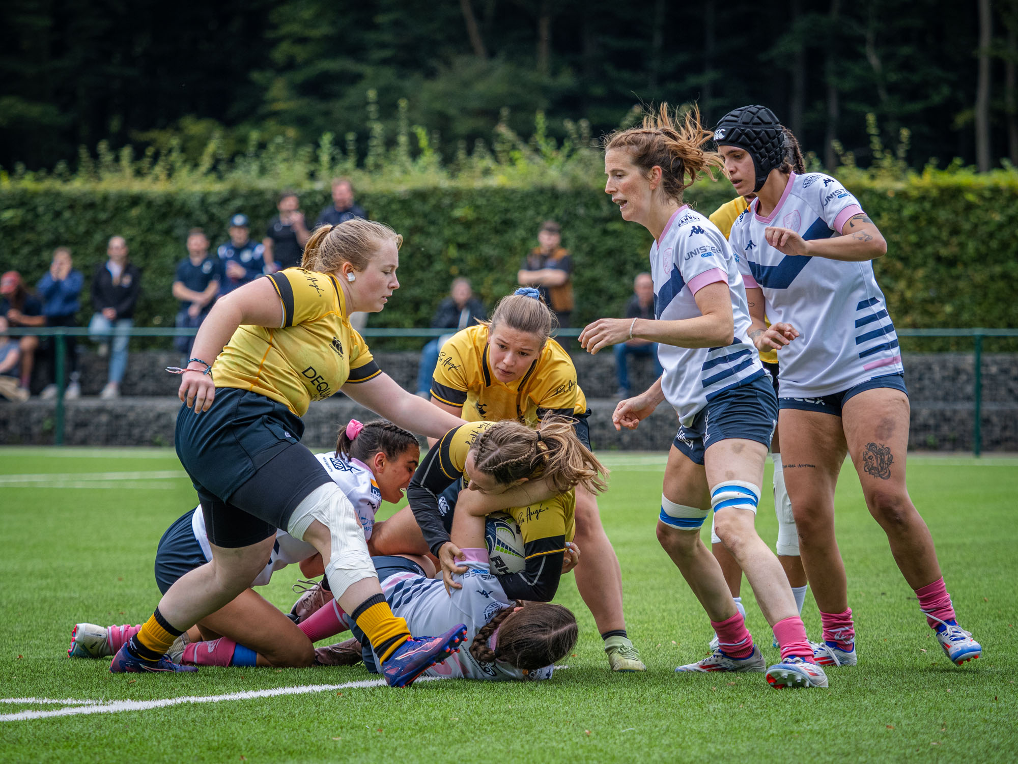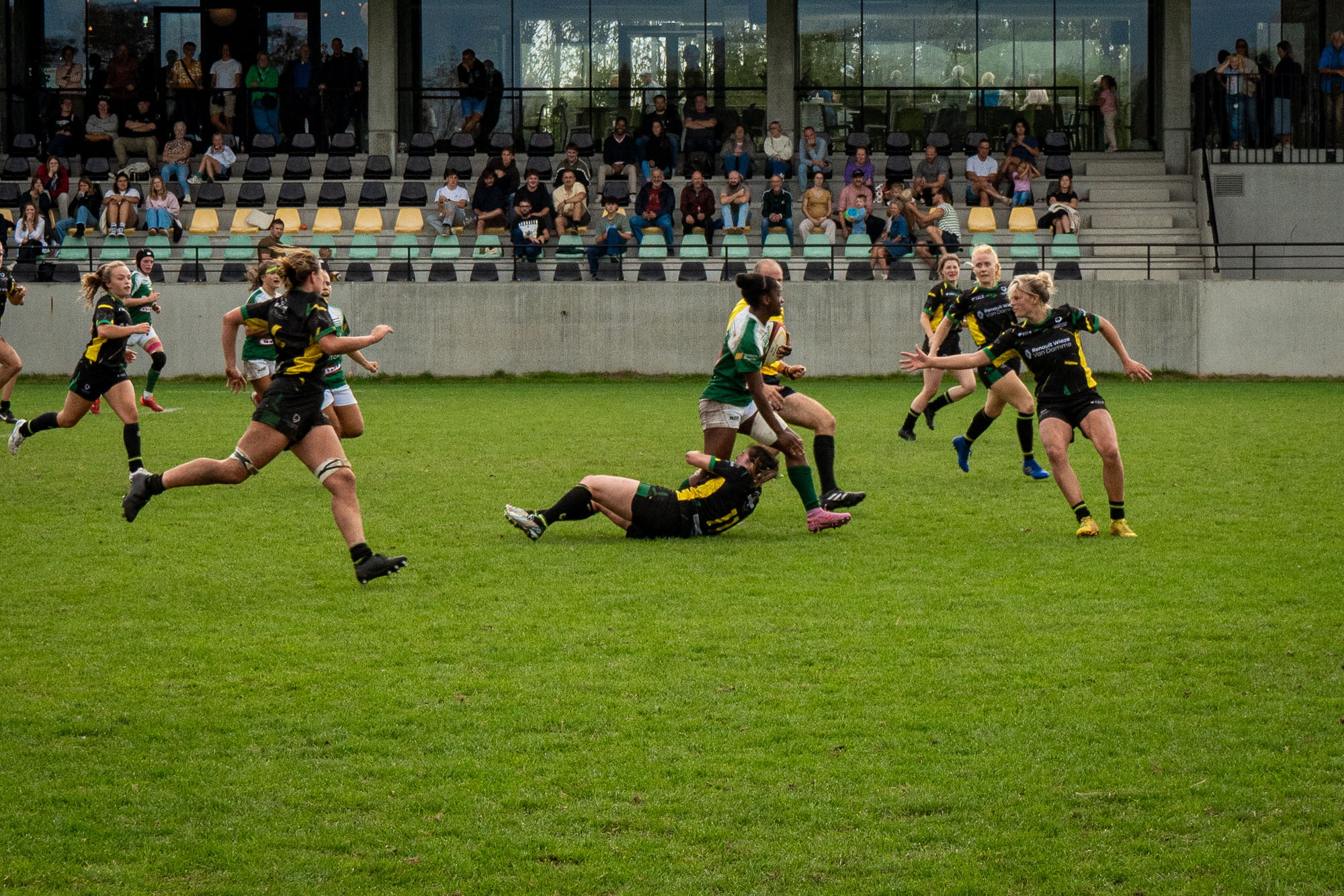 Malgré la défaite sur le terrain d’un candidat au titre désigné, les Sonégiennes sortent de ce match avec un bon sentiment, elles qui avaient tenu tête à Boitsfort une semaine plus tôt. Des Boitsfortoises qui l’ont cette fois emporté face à Frameries en inscrivant trois essais (19-0, mi-temps : 5-0).