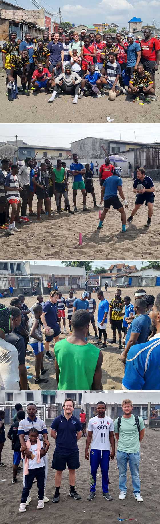Co-entraîneur de l’ASUB Waterloo cette saison, Hadrien Amiel a bouclé son séjour au Congo en dirigeant un entraînement chez les Panthères de Kinshasa, club ayant notamment déjà reçu du matériel en provenance de Belgique. "C’est comique car quand on va s’entraîner, les joueurs portent des anciens maillots du Kituro, de Visé, des Citizens, de Boitsfort,... Il y a aussi le vieux jeu de maillots des Cobras", sourit Hadrien.