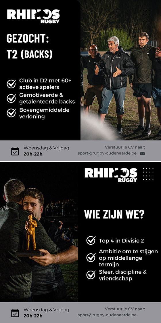 Ben jij een gepassioneerde rugbycoach die klaar is voor een nieuwe uitdaging ? Rhinos Rugby Oudenaarde is op zoek naar versterking van het coachingsteam voor haar seniorenploeg (1e en 2e ploeg) vanaf seizoen 2025-2026 en verder. We zijn een ambitieuze, warme en goed georganiseerde club die jou alle ruimte biedt om je stempel te drukken.