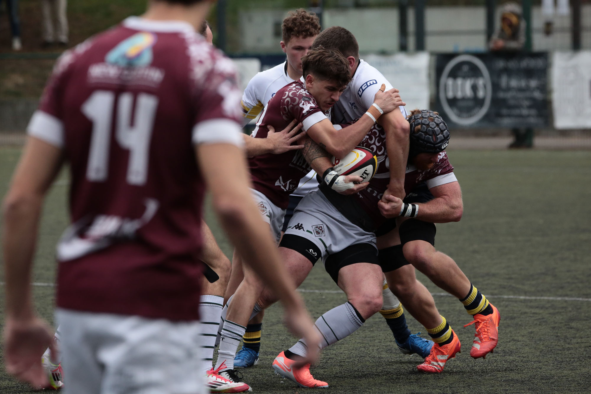 L’indécision fut aussi de mise entre Soignies et Frameries. En confiance après leur plantureuse victoire contre Liège, les Charbon et Or avaient clairement fait le déplacement au Chemin du Tour Lette avec la ferme intention de jouer un vilain tour aux Carriers. A la demi-heure, le marquoir affichait ainis 3-14, après des essais de Tornike Megrelidze et Liam Anciaux. Supérieur en touche mais chahuté en mêlée, Soignies se relançait peu avant la pause via un essai de Simon Van Cauwenbergh (10-14).